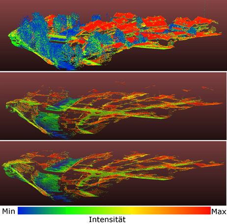 In diesem Teilprojekt der Verbundprojektes For3D der Bayerischen Forschungsstiftung sollen neue Verfahren zur Änderungsanalyse in Punktwolken entwickelt werden. Dabei sollen einerseits Punktwolken von verschieden Sensoren oder Auswerteverfahren fusioniert und zudem mit Aufnahmen zu unterschiedlichen Zeitpunkten verglichen werden. Dazu ist zunächst ein automatisches und hochgenaues Zuordnungsverfahren zu entwickeln. Unter Berücksichtigung der sensortypischen und oberflächen- bzw. materialabgängigen Aufnahmegenauigkeiten sind Änderungen zu detektieren, die auf eine Änderung der 3D-Szene und nicht auf Ungenauigkeiten bei der Generierung der Punktwolke zurückzuführen sind. Als Anwendungsgebiet sollen hauptsächlich Fragestellungen in Zusammenhang mit der Erfassung von Flussläufen durch Lasertopobathymetrie bearbeitet werden. Topobathymetrische Laserscanningdatensätze bilden sowohl Objekte oberhalb der Wasseroberfläche (Topographie) als auch unterhalb der Wasseroberfläche bzw. in der Wassersäule ab (Bathymetrie). Das Fehlen von festen und geometrisch eindeutigen Strukturen (z.B. Gebäude, Straßen) in dieser Messumgebung (Gewässerräume) erschwert nicht nur den Streifenabgleich innerhalb eines Datensatzes sondern vor allem die Referenzierung verschiedener zeitlicher Perioden der gleichen Messumgebung.